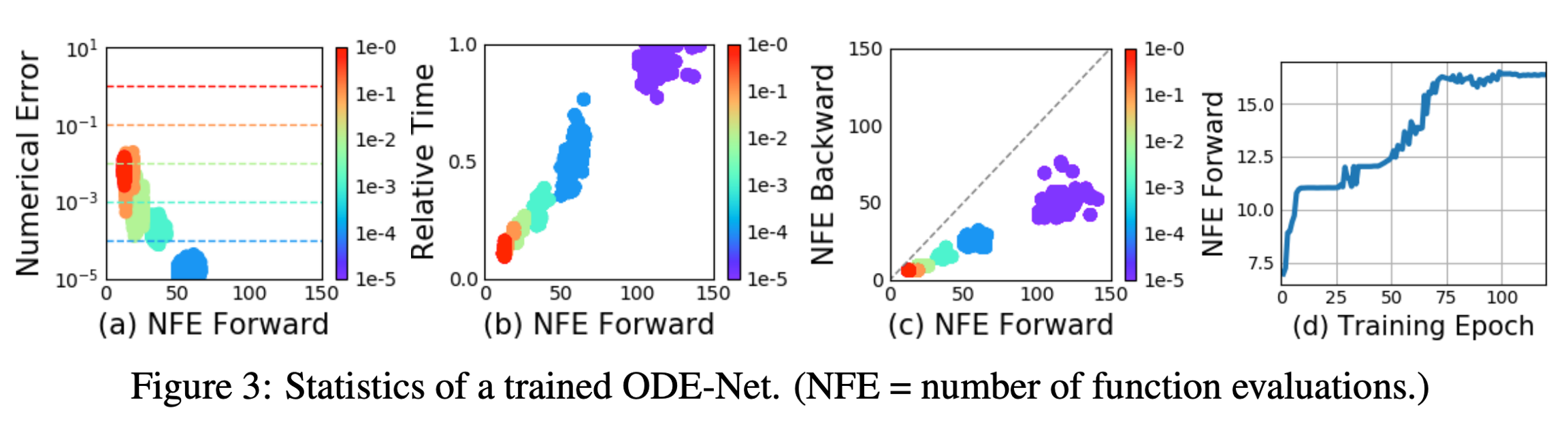 In the figure above, L denotes the number of layers in the ResNet and L~ denotes the number of function evaluations that the ODE solver requests in a single forward pass, which can be interpreted as an implicit number of layers.